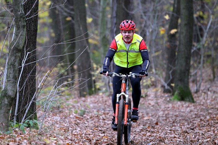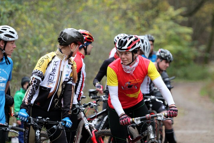 • Die Radrunde ist crossig und führt durch den Wald, mal rechts, mal links, mal hoch und mal runter. Ein MTB ist hierbei ein sehr gefälliges Vehikel. Man kann die Runde aber auch mit Crosser oder Gravelrad fahren. Im Grunde reicht auch nur ein waldtaugliches Rad pro Team, da ihr ja immer nur ein: Athlet:in zu einer Zeit auf dem Rad unterwegs ist.
