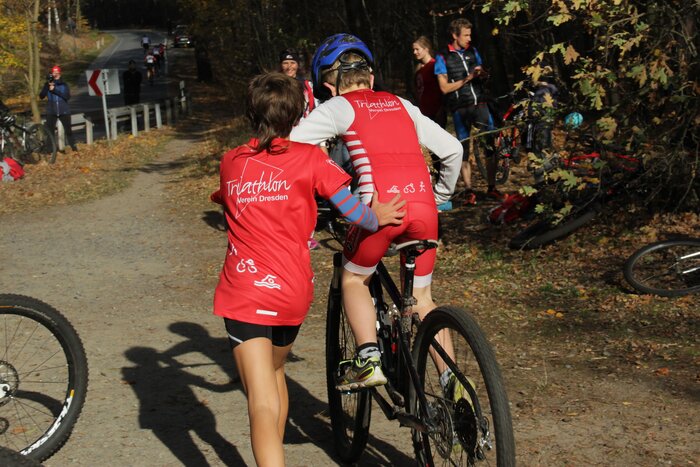 • Ältere Kinder nehmen im großen Rennen teil und fahren nur eine Runde Rad (bis SchB).