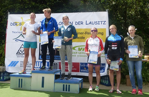 Der Senftenberger Aufstieg hat es in sich. Gefühlte km lang das Rad über stoppeligen Rasen schieben, um dann in einem Balanceakt auf groben Kopfsteinpflaster aufs Rad zu springen. Wer das schafft, hat 4 Radrunden mit einem nicht zu vernachlässigen Anstieg vor sich. Ich kam auf Platz 6 aus dem Wasser. Meine Taktik? Treten! Einfach nur drauf los und es brachte mich auf Platz 3.