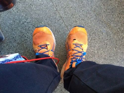 Sonntag früh ging es dann bei schönstem Sonnenwetter mit der Straßenbahn zum Startbereich. Während im Vorjahr noch lange Kleidung angesagt war, ging es diesmal mit Shorts und ärmellosem Oberteil ins Rennen.