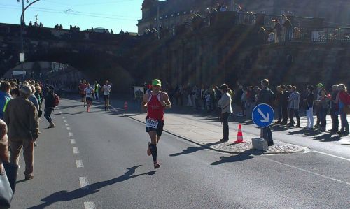 Pünktlich um 11:00 Uhr ging es dann los. Am Postplatz ging es nach links über ungeliebtes Kopfsteinpflaster über die Augustusbrücke und weiter zum Albertplatz. Dort über eine Schleife am Palaisplatz nochmal zum Albertplatz und anschließend durchs Kneipenviertel der äußeren Neustadt. Leider gab es hier kein Bier sondern nur einen Schnelldurchlauf. Hier würde ich dann von Tina angefeuert.