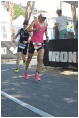 4 Laufrunden am Main in der brütenden Hitze, keine Wolke am Himmel. Ich lief von Verpflegungsstand zu Verpflegungstand immer mit demselben Ablauf: Kopf kühlen mit Wasser, trinken Wasser, Cola, Eiswürfel in die Kleidung gesteckt, nochmal Wasser über den Kopf und weiter. Anfang der 2. Laufrunde bin ich dann auf den 2. Platz vorgelaufen. Die Dehydrierung machte sich sichtbar durch dicke weiße Wurstfinger, also entschied ich mich für ein paar Schübe Salz an den nächsten Verpflegungsstellen. In Runde 2 und 3 musste ich leider jeweils das gleiche Dixie-Örtchen besuchen. *Fluch* Ich habe trotz des miesen Gefühls nie gezweifelt, dass ich es nicht schaffe. Der Zieleinlauf war einfach nur emotional und unbeschreiblich toll. Unfassbar! Vizeeuropameisterin der AK, Hawaii-Slot! Völlig überwältigt.