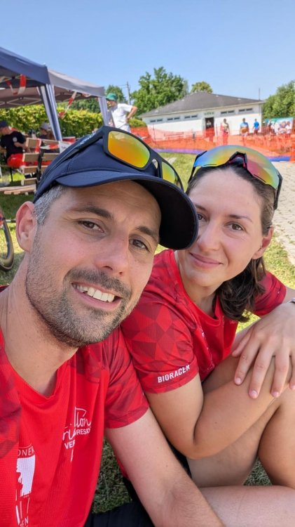 Der letzte Rennpart war nämlich fast ohne Schatten und mit steilen Rampen echt hart und da half ein Fixpunkt zum 'dran festbeißen', um nicht wie viele andere Athleten gehend zu enden. Kurz nach der ersten Runde kam dann noch Nico vorbeigerauscht - auch sichtlich gezeichnet aber flott unterwegs. Und so kamen wir dann mit kleinen Abständen zu dritt fast zur selben Zeit erschöpft aber glücklich im Ziel an.