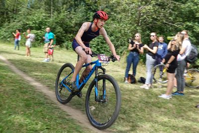 Um 11 starteten dann Schüler B mit Rika und Anastasia. Anastasia gewann ohne Konkurrenz, und Rika wurde 3. ebenfalls mit Kettenproblemen beim Radfahren (SM: Platz 1 und 2).