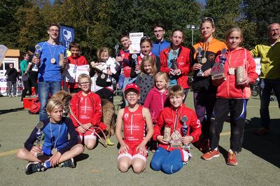 Wenn auch recht frisch am Morgen war das Wetter in Bautzen dann doch wieder viel besser. Mit reichlich Spaß, den mittlerweile alle im profilierten Gelände haben, ging es 1 Woche vor den Herbstferien noch einmal zur Sache. Die Veranstaltung war gleichzeitig Sachsenmeisterschaft und Finallauf des Lausitzer Junior Triathlon Cup. Alle waren also bis in die Haarspitzen motiviert und lieferten harte Action. Am Ende folgte ein Ehrungsmarathon, bei dem einige unserer Sportler aufgrund der Wertungsmehrheit bis zu 3 Pokalen einheimsten. Und da es im Cup auch Pokale bis zum 3. Platz gab, durften sich darüber auch noch mehr freuen.