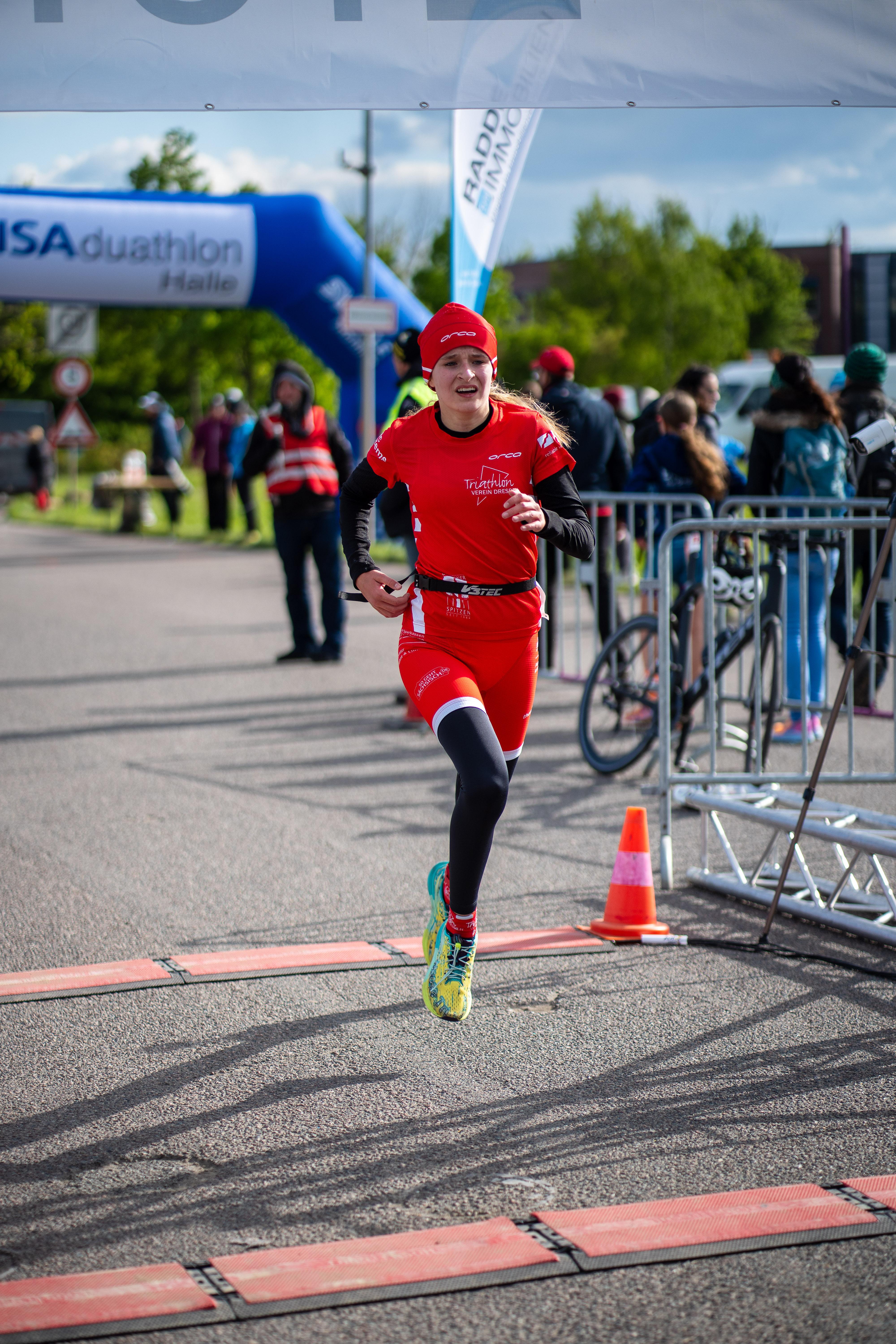 Neben dem DTU-Cup Rennen fand am 21.April auch der 9. Gisaduathlon Halle statt. In der Altersklasse Schüler A weiblich startete Finja. Finja erreichte über 2km Laufen, 7km Rad und 1km Laufen den 6. Platz.