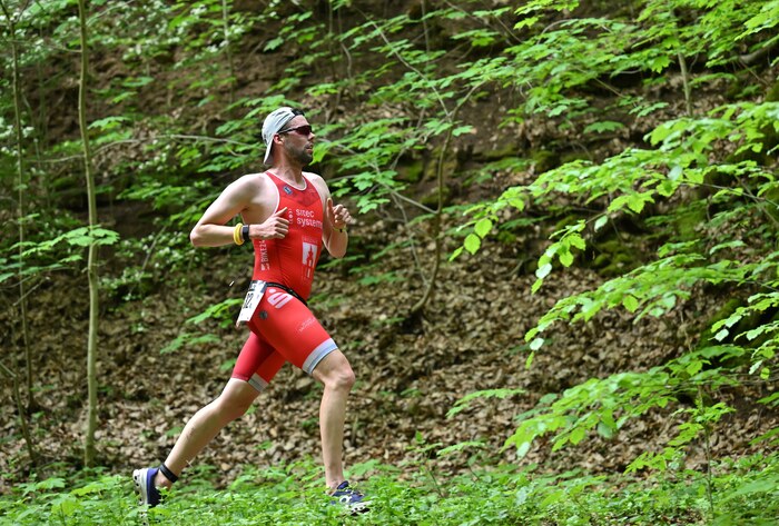 Auf meiner Bahn zeigte sich schnell, dass meine Wettstreiter sehr motiviert waren und die 400m in 1:15-1:20/100m schwammen, was für mich bedeutete, dass ich als letzter und etwas deprimiert die Bahn verließ. Zum Glück war es damit geschafft und es ging weiter auf die Laufstrecke. Da mir Bergläufe etwas mehr liegen, war ich wieder deutlich motivierter und konnte noch einige Plätze gut machen. Meine Carbonschuhe werde ich das nächste Mal aber nicht anziehen, weil sie sich auf dieser Strecke sehr schwammig liefen.