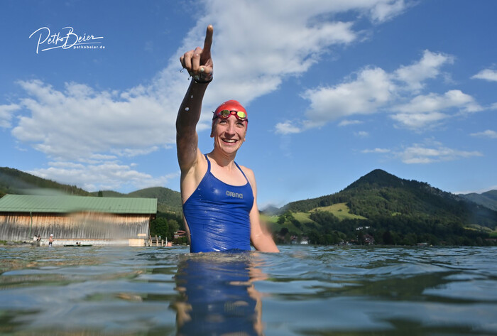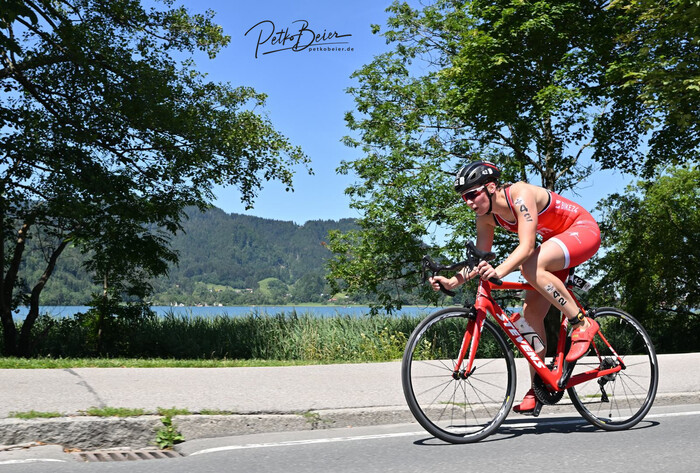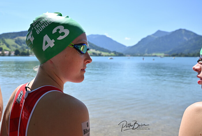 Emily Köpper kurz nach dem Schwimmausstieg. Hier führt die Strecke noch flach am Schliersee entlang.