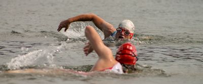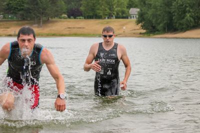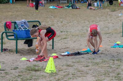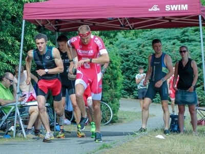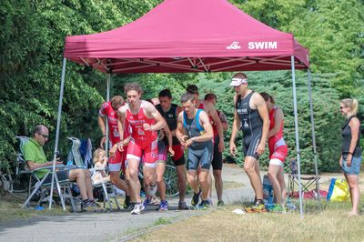 Und So begaben sich die Wettkämpfer nach ganz verschiedenen warm-up-Distanzen an Land oder im Wasser, wie gewohnt 2 Mal ins Rennen. Nicht das erste Mal, aber bisher seltener wurden die Rennen wie folgt durchgeführt: Lauf: 1,3km - Schwimmen: 500m - Lauf: 1,3km.