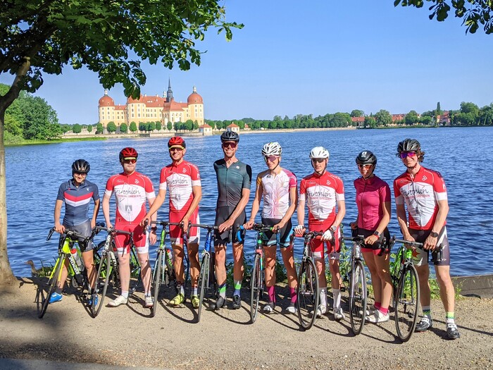 Freitagnachmittag startete unser Teamwochenende bei flauschigen Temperaturen jenseits der 30°C mit einer zweistündigen Radtour in Richtung Moritzburg. Neben lockerem Kullern und viel Quatschen, stand das Sightseeing für unser neues Teammitglied Pauline Feußner aus Halle auf dem Plan. Nach der Fahrt verabredeten wir uns noch zu einem wohlverdienten Pizza-Date und konnten den Abend gemeinsam bei Martin ausklingen lassen. Sophie Fischer, deren Auto die warmen Temperaturen nicht so gut verträgt, war inzwischen auch dazu gestoßen. Abends konnten wir dann endlich wieder in größerer Runde zusammensitzen, quatschen und Quatsch machen. Wir haben viel gelacht, Schnüre wettessen veranstaltet und die abkühlende Abendluft genossen.
