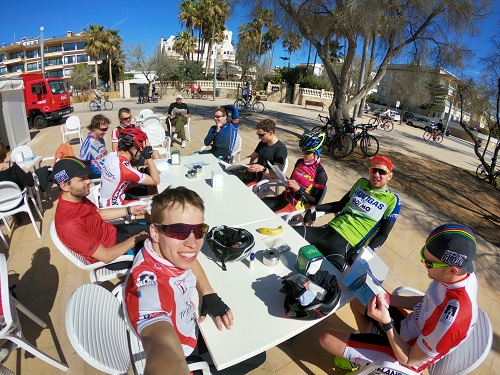 Die bisher schönste Radtour führte uns bei besten Bedingungen einmal über die Insel bis nach Palma. "Palma, Palma, Palma de Mallorca!" Prima Ohrwurm, gern geschehen! Wie im Lied besungen, ist das Städtchen durchaus nett anzuschauen. Bis zum Ballermann hat die Runde zum Unmut einiger Mitstreiter jedoch nicht gereicht. Statt Kaltgetränke mit Ulle aus Eimern reichte man uns deshalb Cappuccinos aus Tassen. Aus Tassen! Wie konservativ. Solche Pausen werden von unserem selbsteingeflogenen Kräuterexperten Martin alias Mirakulix genutzt, die Trikottaschen randvoll mit allerlei Grünzeug vom Wegesrand zu füllen. Zuhause angekommen wird das Ganze mit heißem Wasser aufgebrüht und während eines speziellen Tanzes um die Feuerkochstelle abgeschmeckt. Sagen wir so, es riecht wie eine Mischung aus Krankenhaus und Schullandheim und schmeckt sehr "gesund", aber der weltbeste Triathlonverein vertraut seinen Profis.
